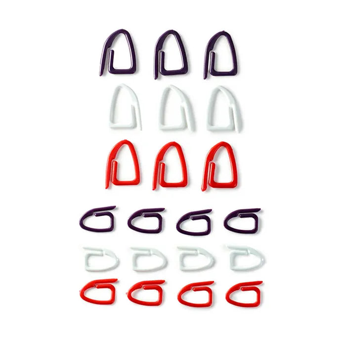 Žymekliai tinka tiek mezgimui tiek nėrimui. Dažniausia naudojami pasižymėti akių ar eilučių skaičių, pasikartojantį raštą ar mezgimo klaidas. Rinkinį sudaro net 21vnt skirtingų spalvų žymeklių.