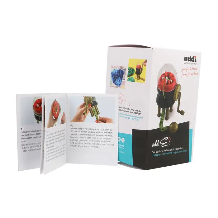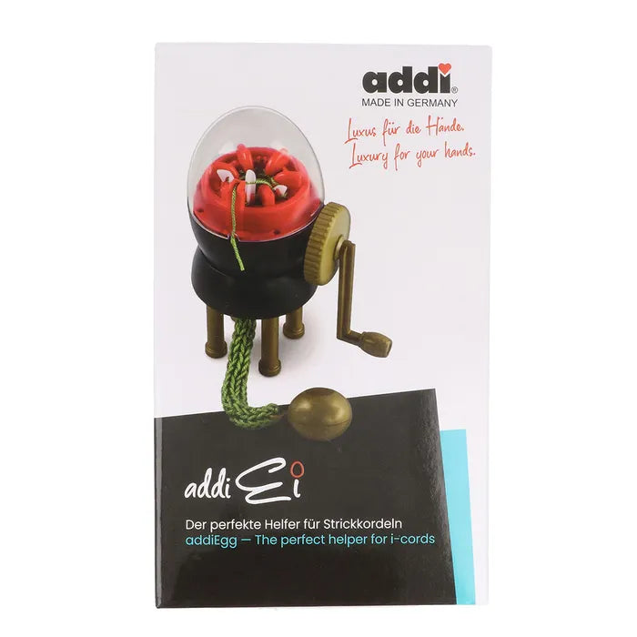 „Addi Egg Spool Knitter“ – tai aukštos kokybės įrankis, sukurtas greitam ir smagiam virvučių mezgimui! Jame yra 6 kabliukai, todėl jis puikiai tinka kuriant itin storas virvutes iš įvairaus tipo siūlų. Pagamintas virvutes galite naudoti pagalvėlėms puošti arba gaminti kilimėlius ir krepšius! Rinkinys turi instrukcijas su nuotraukomis.