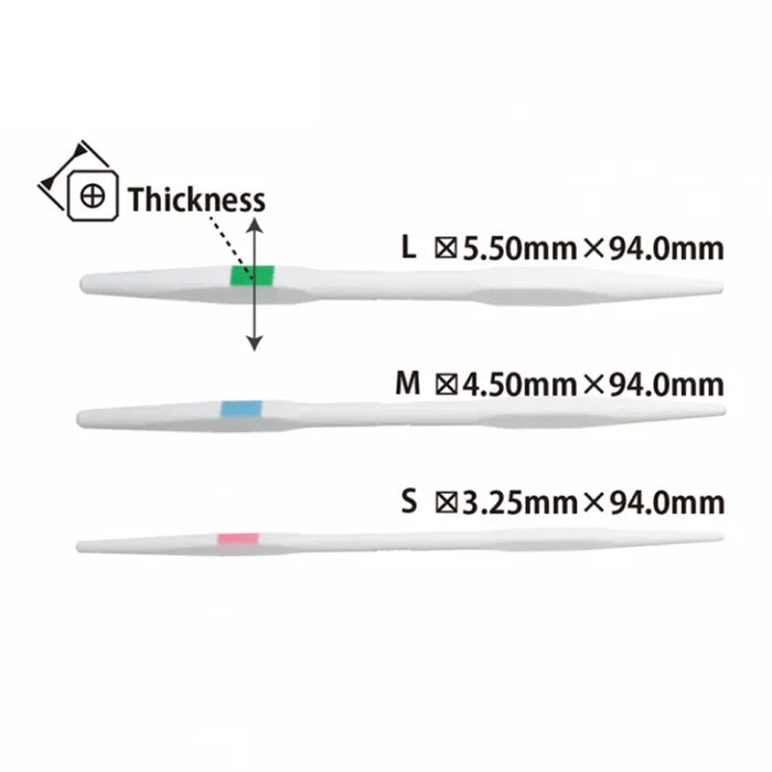 Dydžiai: 3.25mm (S), 4.50mm (M), 5.50mm (L)