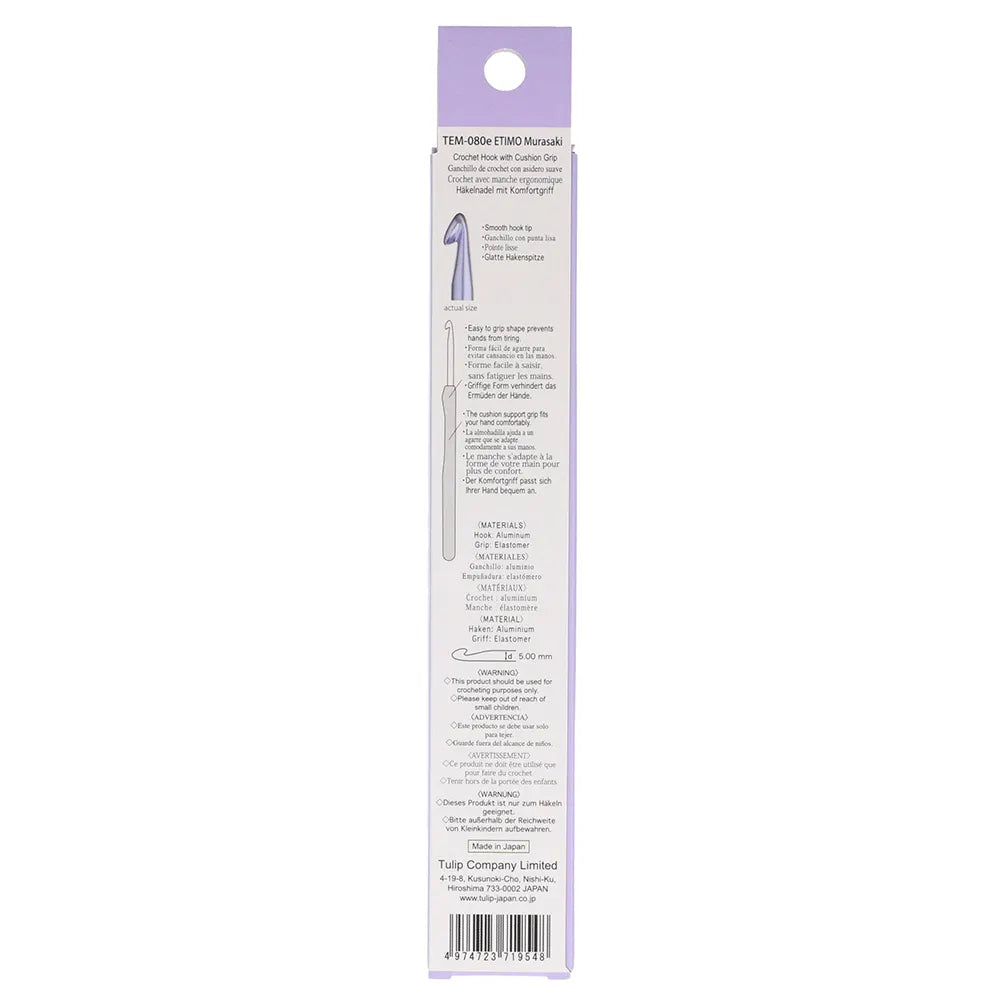 Pasaulyje garsūs ir itin pamėgti Tulip Etimo vąšeliai pristatomi naujo, elegantiško dizaino. Tulip Etimo Murasaki aliumininiai vąšeliai su patogia „softgrip“ rankenėle leidžia nerti ilgai be rankų nuovargio. Kiekvieno vąšelio galiukas tiksliai suformuotas ir glotnus, todėl siūlai lengvai slysta ir nekimba. Vąšelio dydis aiškiai matomas ant rankenėlės.